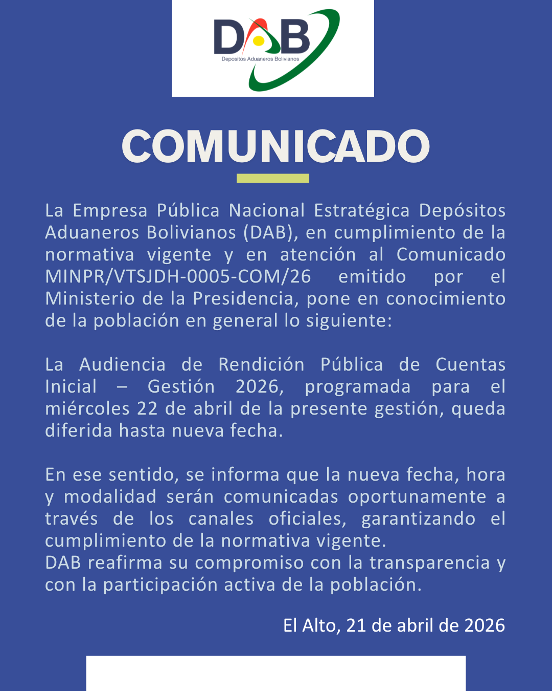 Depósitos Aduaneros Bolivianos - DAB, piensa en su seguridad!